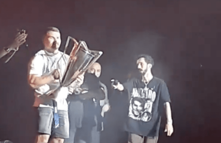 « On a d’excellents artistes, mais on a aussi d’excellents sportifs… », a annoncé Oli avant qu’Antoine Dupont ne monte sur scène sous une ovation. La musique « Allez le stade », jouée à chaque essai du Stade Toulousain à domicile, a résonné tandis que les spectateurs scandaient « Dupont, Dupont, Dupont ». Le récent champion d’Europe a brandi le trophée en signe de victoire, déclenchant une vague d’applaudissements. « Les amis, du bruit pour Antoine Dupont qui a ramené la 6e étoile », a clamé Oli, suivi par Bigflo qui a ajouté avec humour : « Et Dupont, je n’arrive pas à la porter (la coupe). »