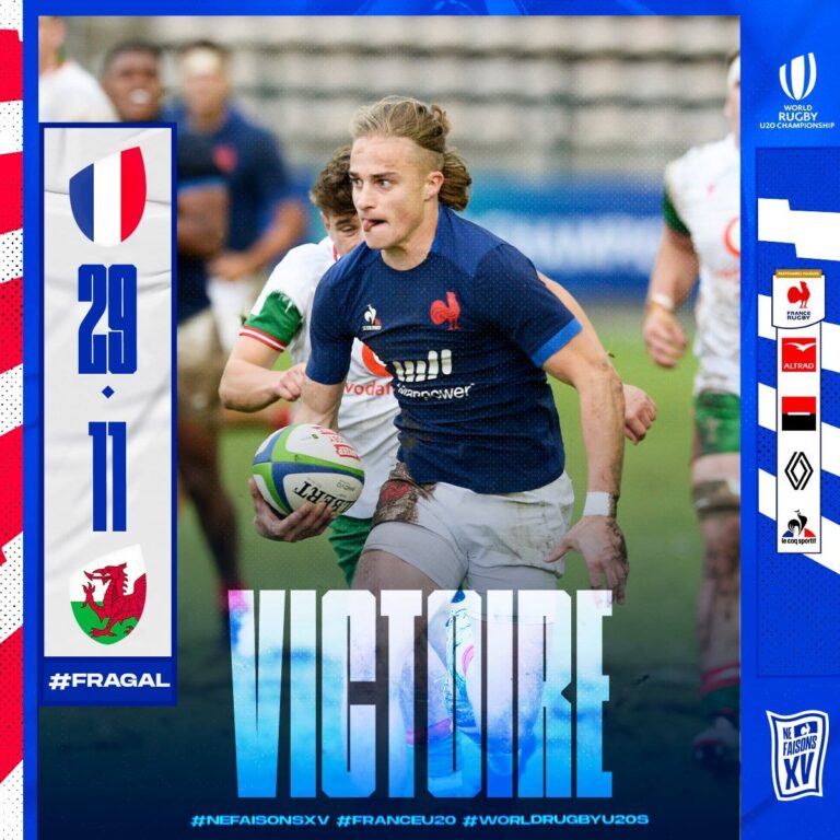 Les Bleuets ont brillamment assuré leur qualification pour les demi-finales de la Coupe du monde U20 en battant le pays de Galles avec un score de 29-11. Cette victoire, essentielle pour poursuivre leur parcours dans la compétition, a été marquée par un jeu solide et une performance collective remarquable, permettant aux jeunes Français de compenser leur défaite contre la Nouvelle-Zélande.
