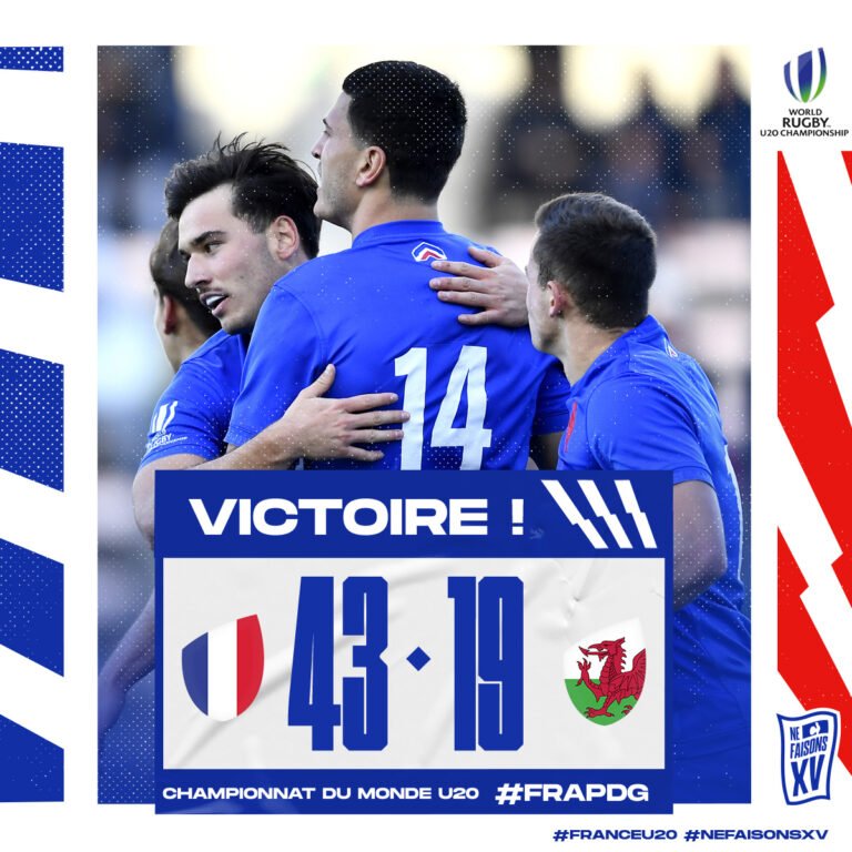 Paris, 4 juil 2023 (AFP) – L’équipe de France des moins de 20 ans s’est brillamment qualifiée pour les demi-finales de la Coupe du monde en Afrique du Sud, en enchaînant mardi au Cap face au pays de Galles une troisième victoire bonifiée (43-19) en autant de rencontres.