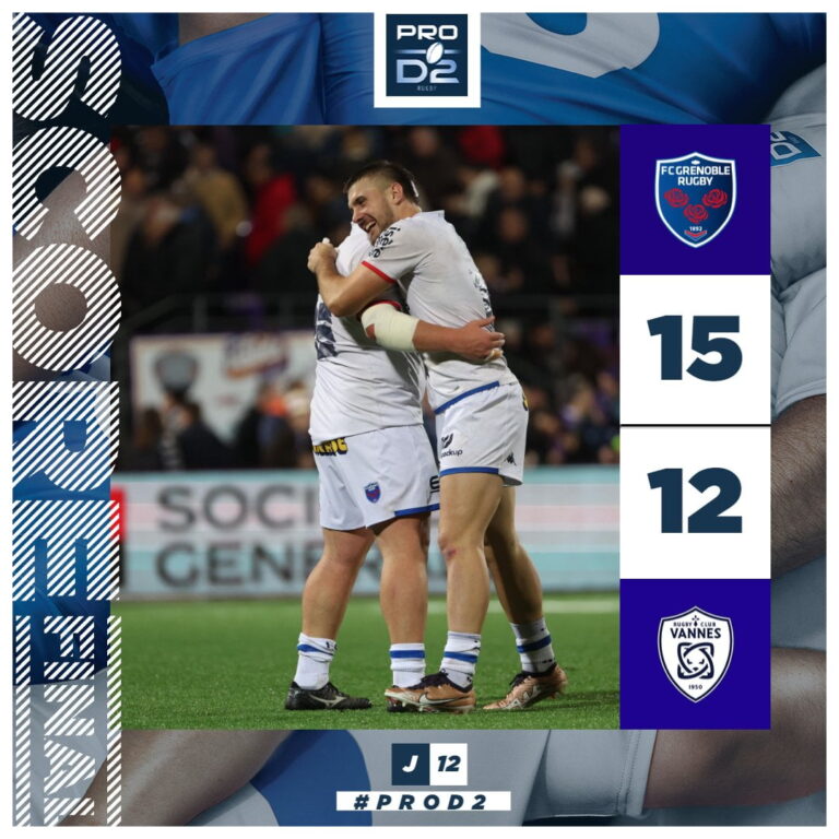 Leader tranquille de la Pro D2, Vannes a concédé sa deuxième défaite de la saison jeudi soir à Grenoble (15-12), en match d’ouverture de la douzième journée.
