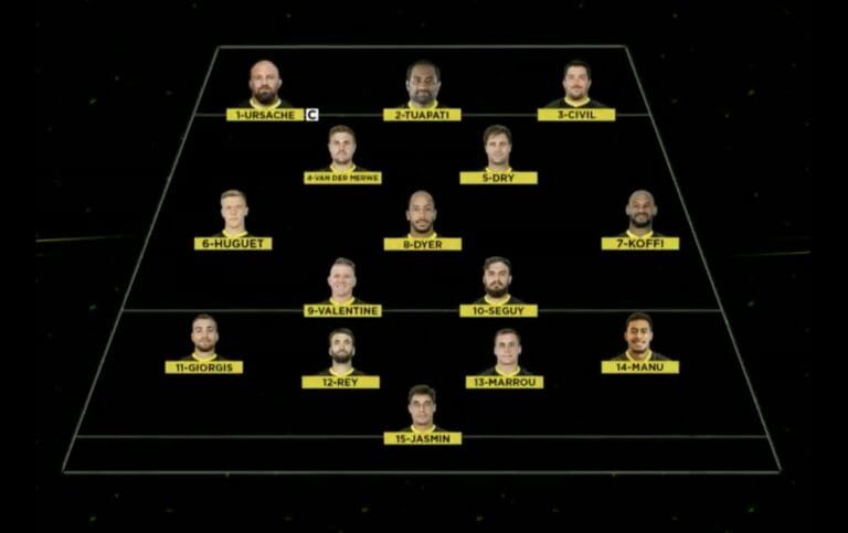 On retrouve donc en titulaires quatre joueurs fraîchement sortis de l’infirmerie, Andreï Ursache au poste de pilier Chris Van der Merwe en seconde ligne, Sébastien Giorgis à l’aile et Julien Rey au centre, tandis que Josh Valentine fait son retour après un match de suspension, Xérom Civil quant à lui, après avoir retrouvé la forme, retrouve son poste de pilier.