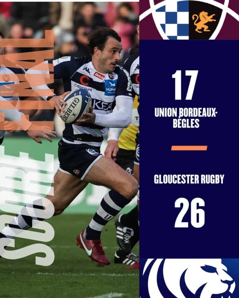 Champions Cup – 4e journée – Poule A: Bordeaux-Bègles (FRA) – Gloucester (ENG) 17 – 26