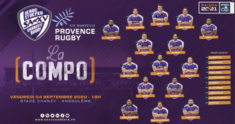 Découvrez le composition du SA XV Charente Rugby pour la réception de Provence Rugby ce vendredi à 19h00 au Stade Chanzy à Angoulème.